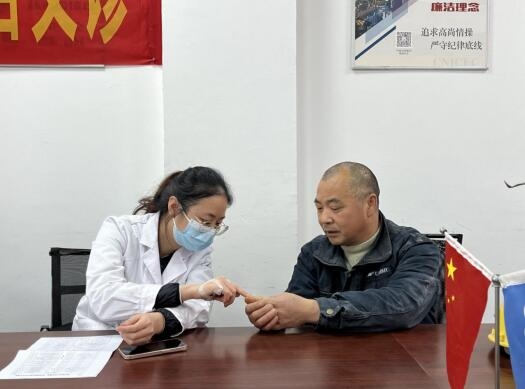 本次活動在南樾天宸二期項目部會議室開展?;顒蝇F場,健康專家采取面對面坐診形式,為員工進行健康答疑,提出針對性的預防和醫療建議,引導員工在工作之余養成健康生活習慣,加強多方面健康知識學習。由于長期在戶外進行施工工作,一線員工們大多存在不同程度的腰椎損傷、噪音聾、手臂震動病等職業疾病,面對此情況,專家們現場教授員工健康自測方法,并為員工量身打造體檢方案,便于員工下一步的健康診療。