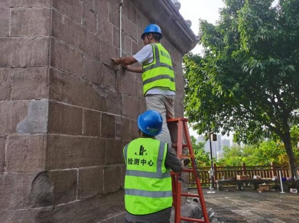 項目推進過程中,市建科院積極聯(lián)動多方力量,為監(jiān)測工作的科學(xué)性與合規(guī)性保駕護航。重慶市文物考古研究院、江北區(qū)文物保護管理所的相關(guān)人員與監(jiān)測團隊并肩作戰(zhàn),在高溫環(huán)境下共同勘察現(xiàn)場、深入溝通,逐一確認監(jiān)測設(shè)備的安裝部位,并就文物安裝的注意事項進行細致的技術(shù)交底。多方協(xié)作確保了設(shè)備部署既能滿足監(jiān)測的精準需求,又嚴格遵循文物保護的專業(yè)規(guī)范,讓每一步操作都經(jīng)得起專業(yè)檢驗。